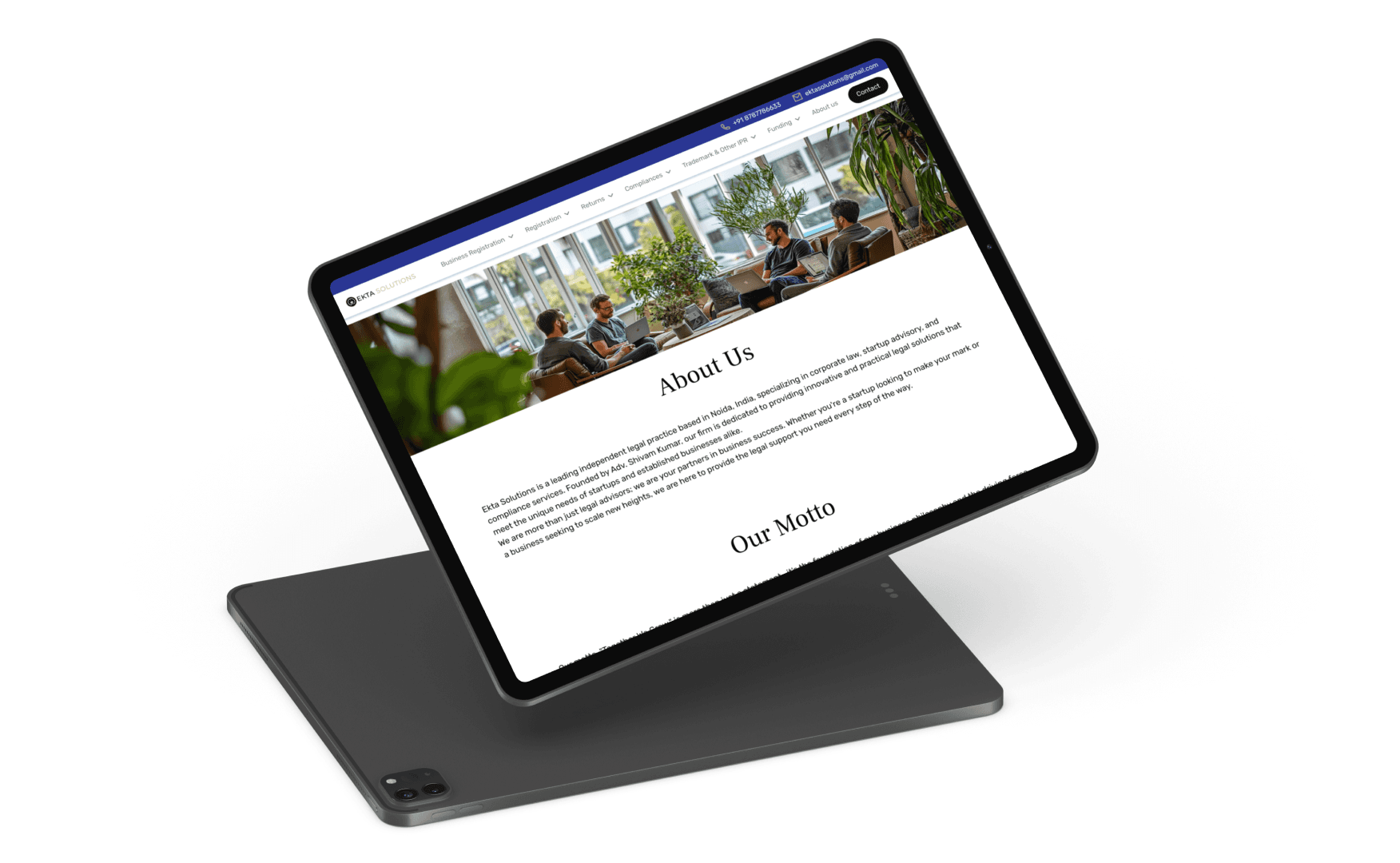 For Ekta Solutions, a trusted legal consulting and startup support firm, we crafted a website that serves as a robust platform for entrepreneurs seeking legal and financial guidance. Our focus was on designing an intuitive, user-friendly interface that clearly communicates the firm’s services while creating an engaging and informative experience for users. With a CMS-driven structure of 37+ pages, we ensured seamless navigation and easy access to in-depth information about their services. By prioritising clarity, trust, and accessibility, we provided an online presence that reflects the professionalism and expertise of Ekta Solutions, helping users find the support they need with ease.